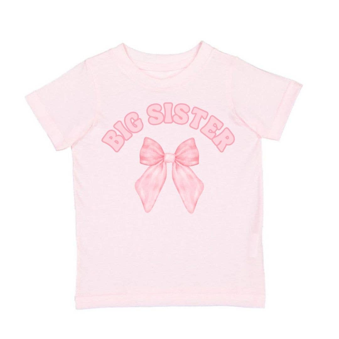 The Big Sister Bow Short Sleeve T-Shirt is a fun and cute t-shirt for any girl who's a big sister or about to become a big sister! Features: * Shirt Color: Ballet Pink * Graphic Color: Light and Dark Pink *