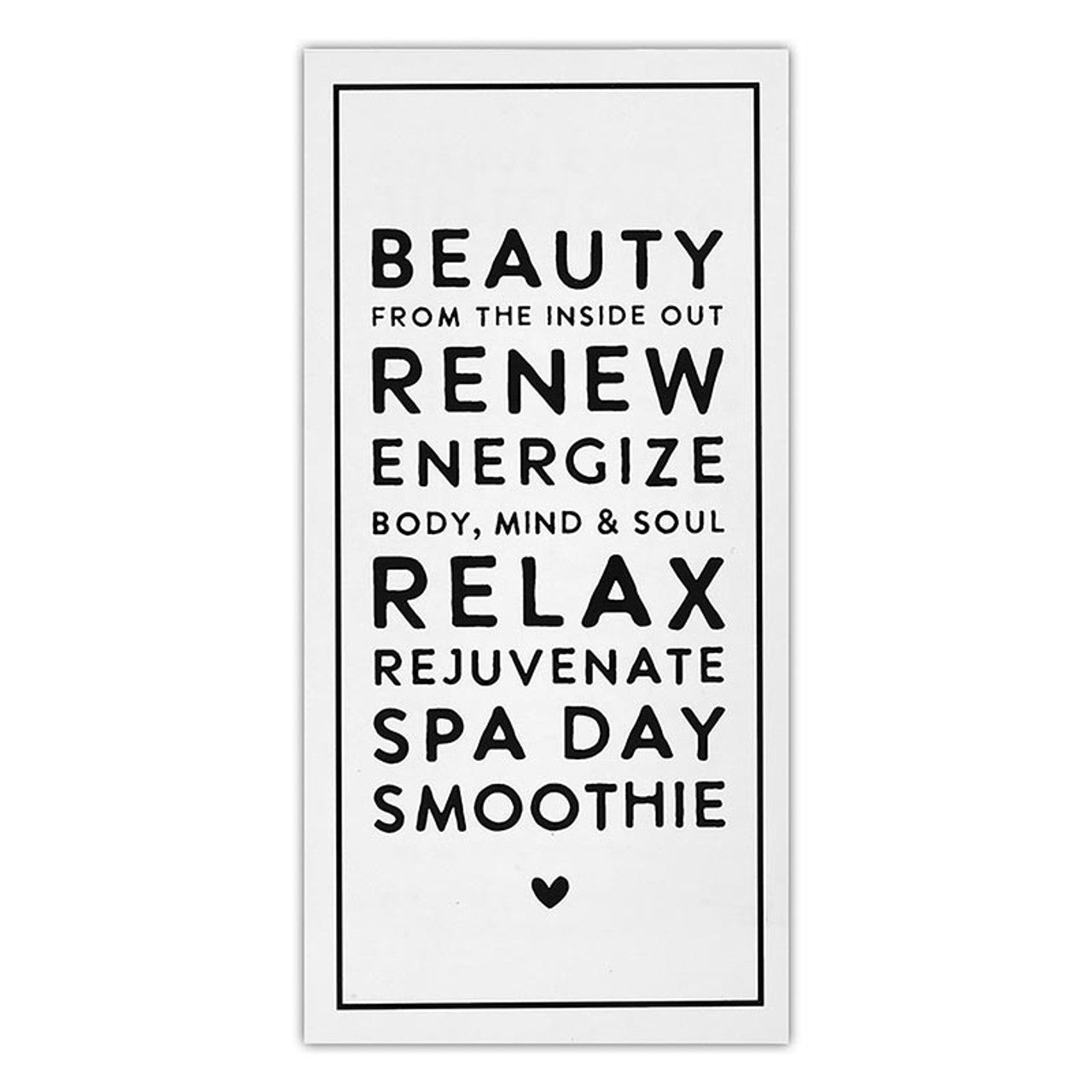 Sip in style with this 20oz glass tumbler with black bows and bamoo lid. Bonus: Comes with glass straw and a refreshing spa day smoothie recipe!