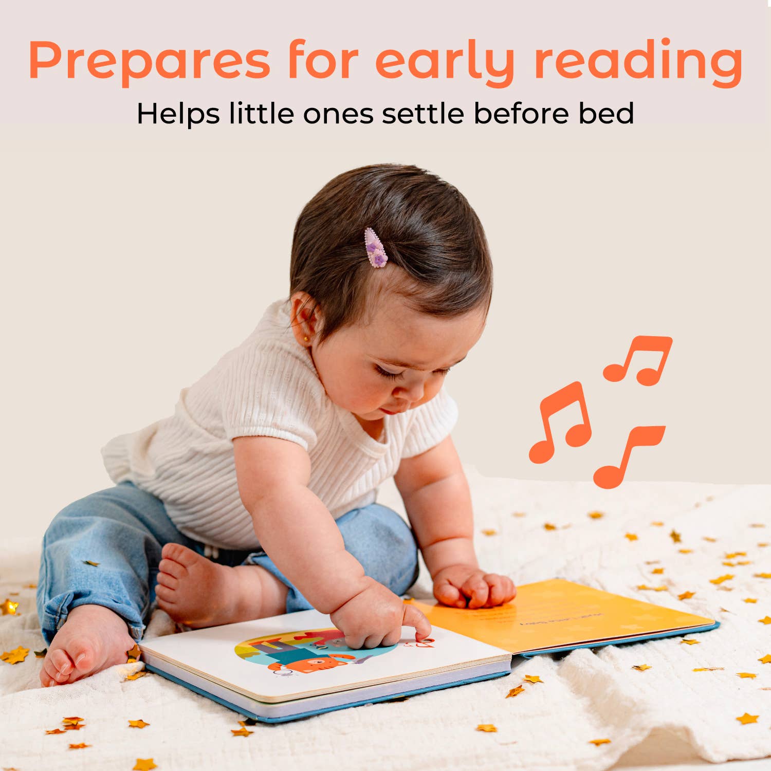 Twinkle Little Star offers six soothing melodies fitting for a gentle lullaby. Parents can use the accompanying illustrations to bring these classic nursery rhymes to life. This sound book contains beloved tunes like Hush Little Baby, Rock-a-Bye-Baby, Twinkle, Twinkle Little Star, Little Boy Blue, Are You Sleeping?, and Go To Sleep. It encourages a love of reading and music with this engaging bedtime accessory. Enhanced with a new volume control, improved speaker quality, and a fast, rechargeable battery for extended play.