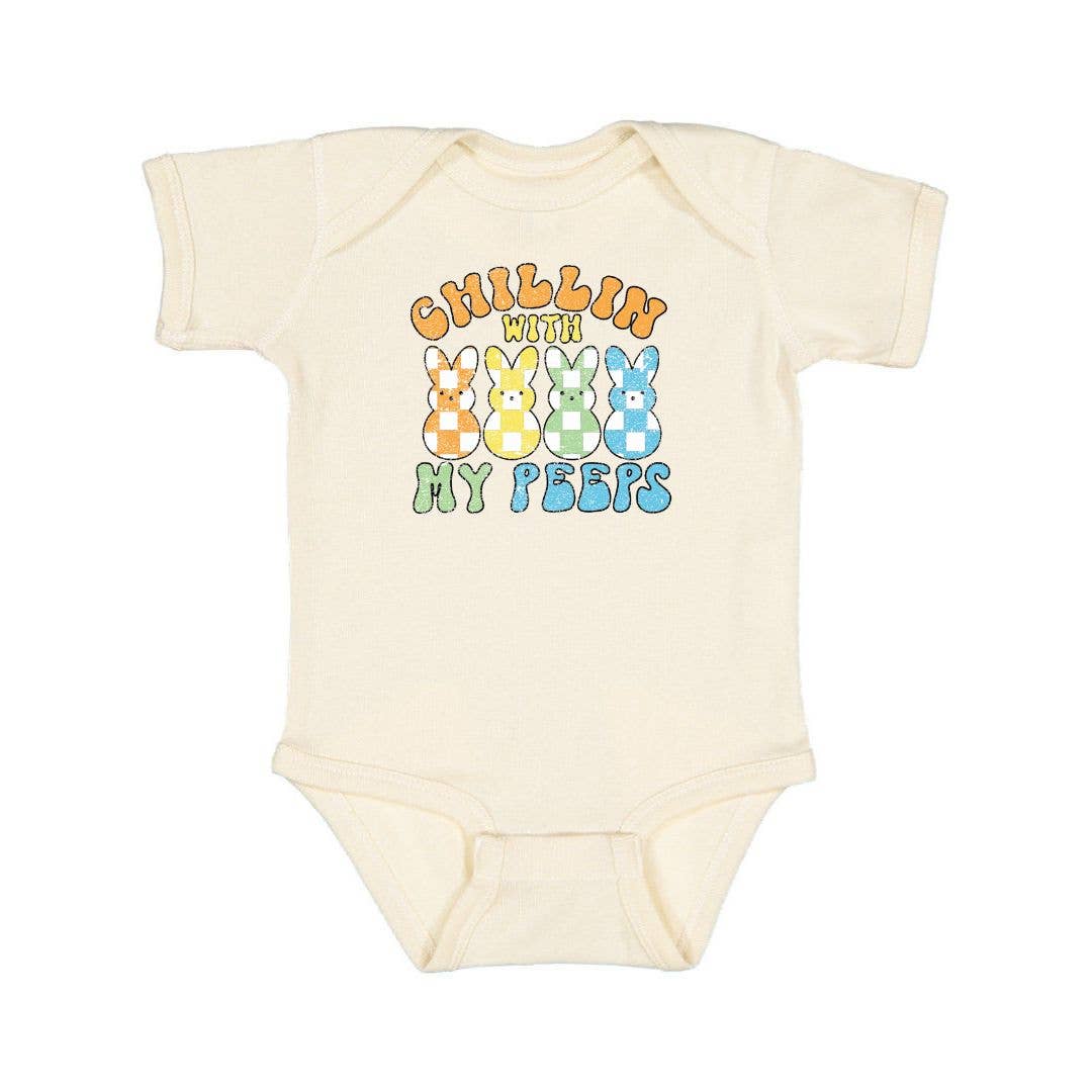 The Chillin With My Peeps Easter Short Sleeve Bodysuit is a fun and festive bodysuit for babies celebrating Easter!
