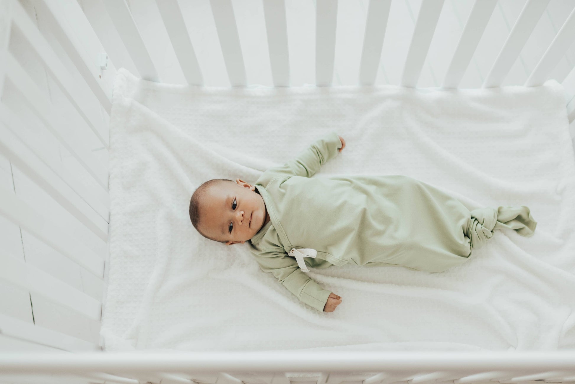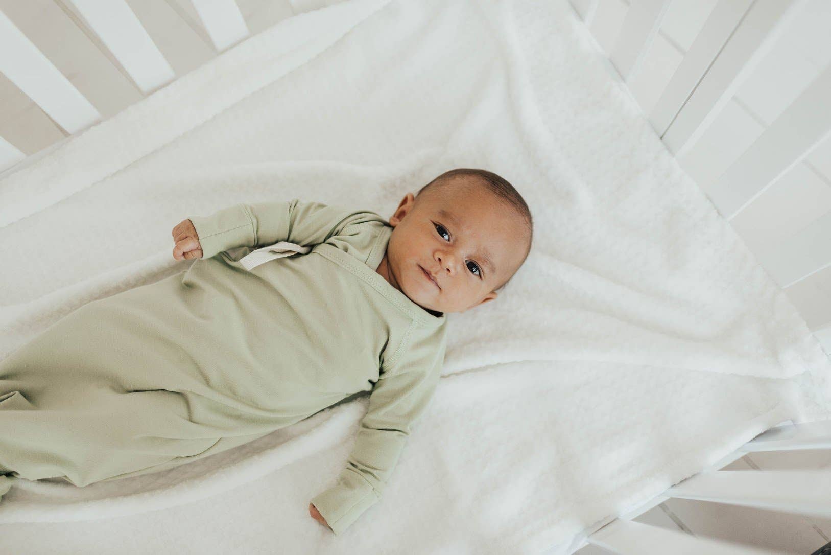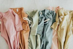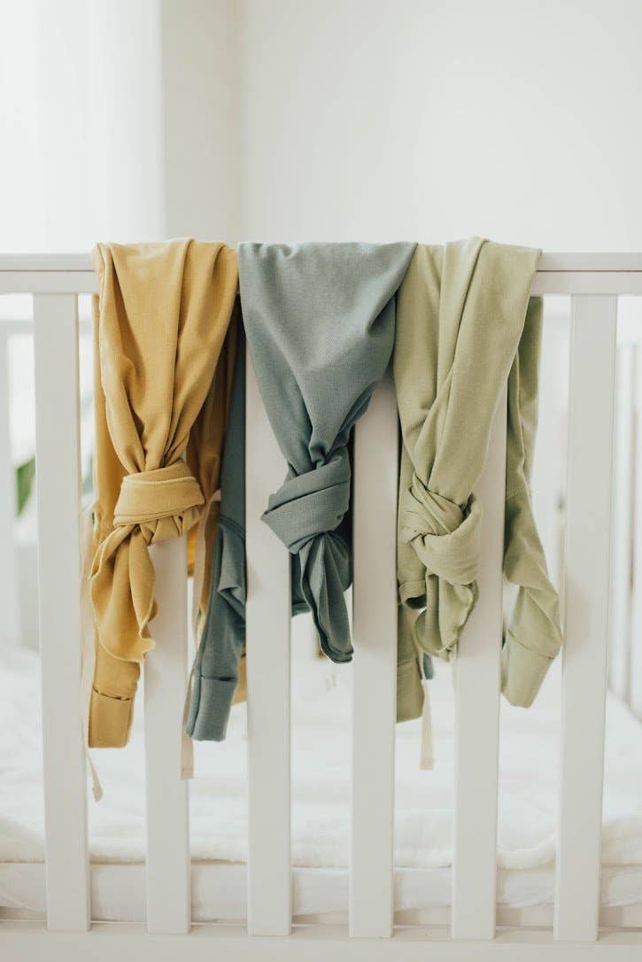 Double tie kimono for your ease in dressing your baby. A knotted bottom creates easy diaper changing, along with keeping your baby's feet warm.