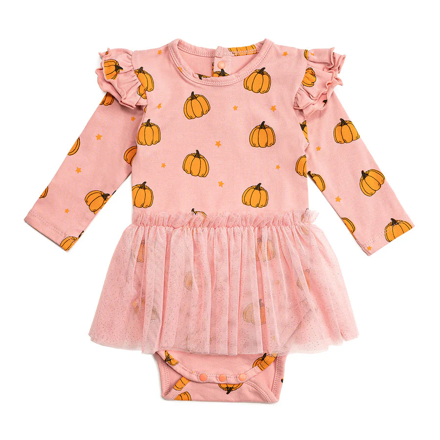 The Pumpkin Blush Long Sleeve Tutu Dress is the perfect twirl-worthy dress for celebrating Fall!