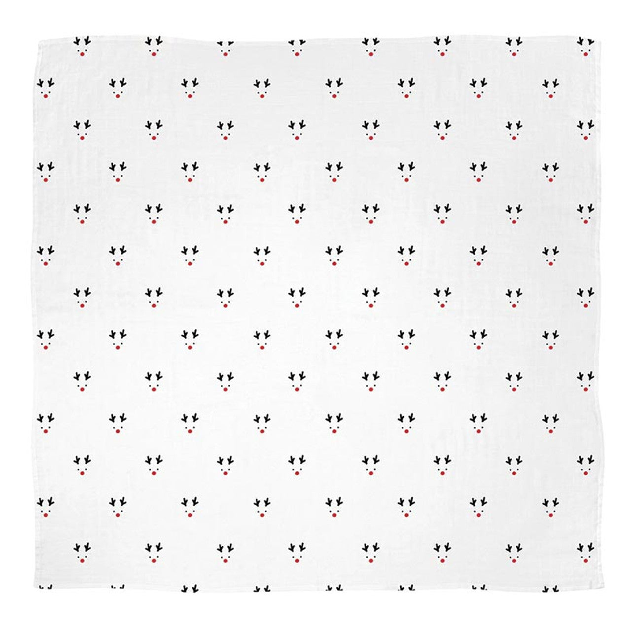 The reindeer swaddle and rattle set for babies, the perfect gift to celebrate the holiday season and keep any little one cozy and comfortable. This charming set includes a soft and snug swaddle blanket and a matching rattle tied together with a sweet twill ribbon making the set gift ready.