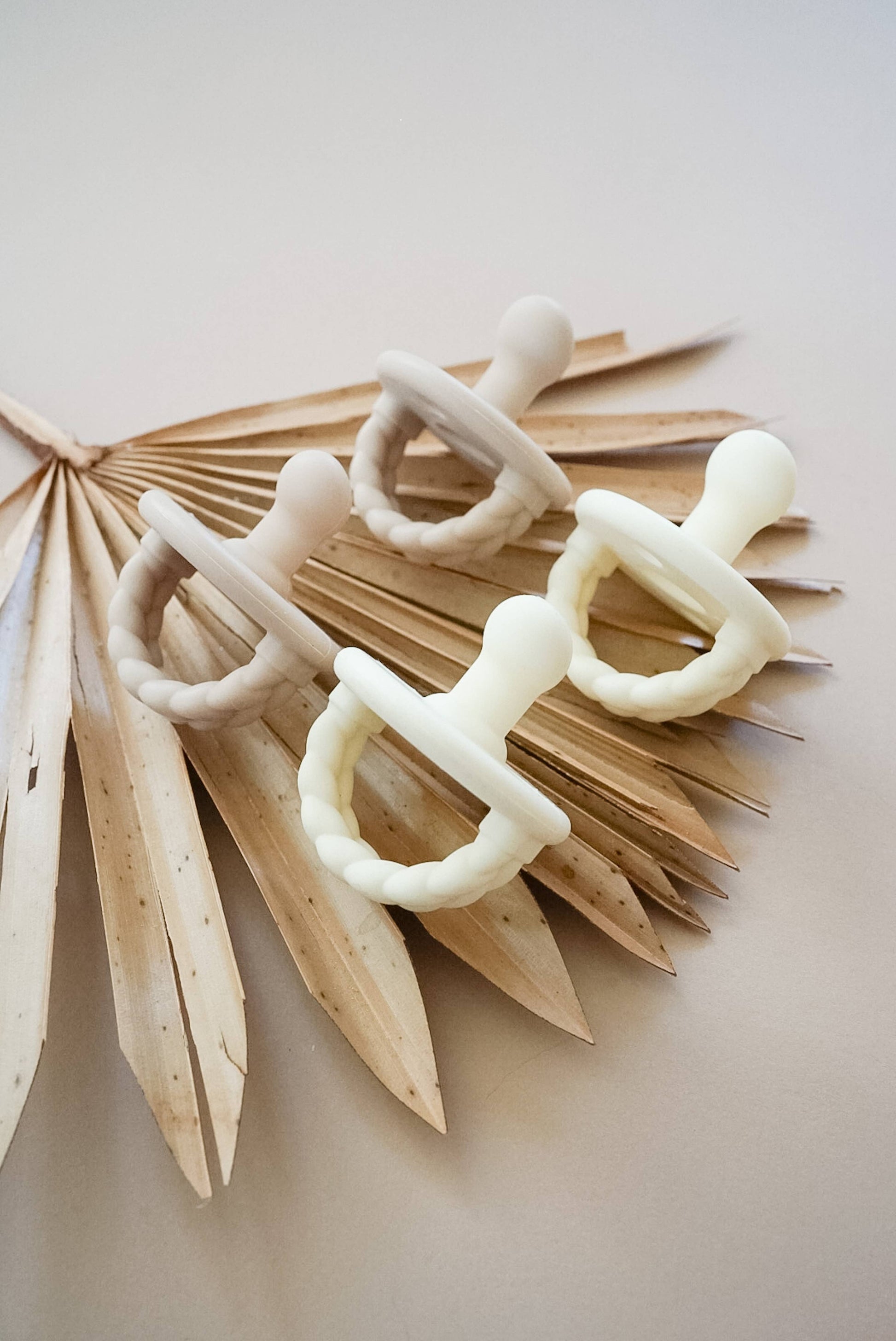 Our precious pacifiers feature a one-piece design made of 100% food grade silicone. The soft, orthodontic nipple shape reduces pressure on the gumline while soothing baby. Pack of 2 pacifiers.